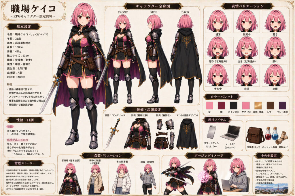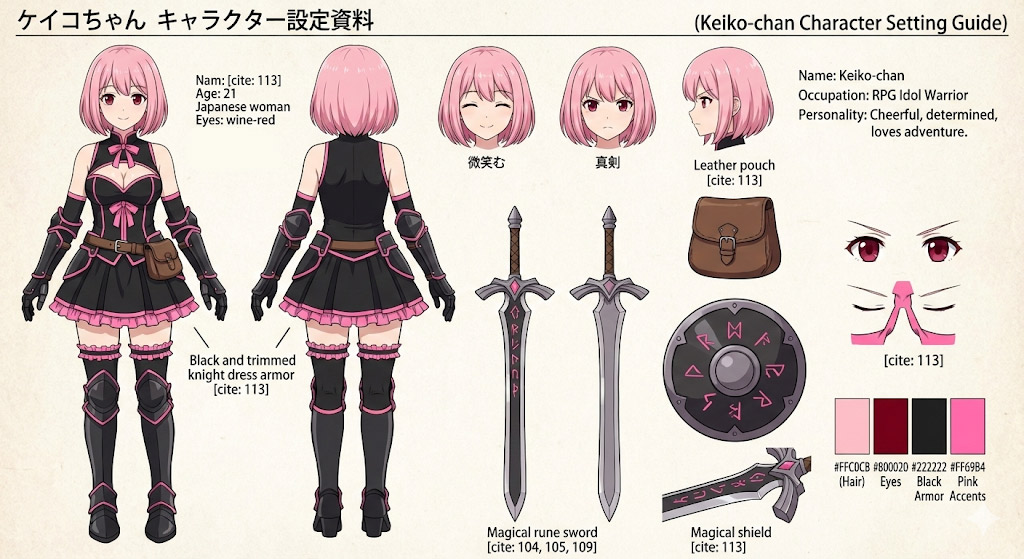 RPGケイコちゃんのキャラクター設定資料を画像で作ってください。