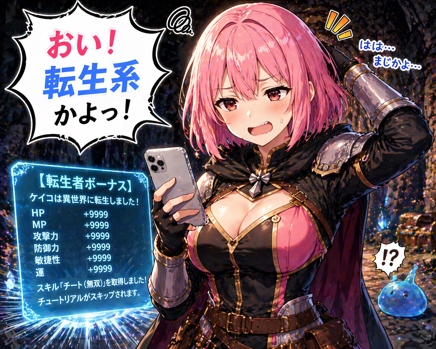 せっかくありがちなRPG(転生系ネタ)なので、以下のプロンプトで描画。